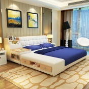 卡菲纳实木床 双人床 1.8/1.5米床 现代实木橡木床LHSMC1401 胡桃色 1800*200